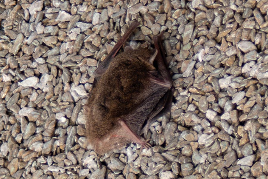 同じ壁の上の方、屋根下の日陰部分にはコウモリがいた。