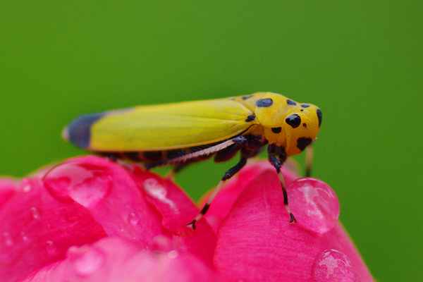 それでも我慢できず、昼食時の空き時間に庭に出てみると、窄んだチューリップの花にツマグロオオヨコバイがいた。位置が悪かったので、指を近づけて天辺まで移動してもらった。名前の通り横に動くのが面白い。