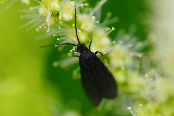 咲き始めたクリの花に、黒い ガ がいた。マダラガの1種だと思うが、種名までは分からなかった。クリの花って、こうして見ると なんとなく幻想的な雰囲気がある。