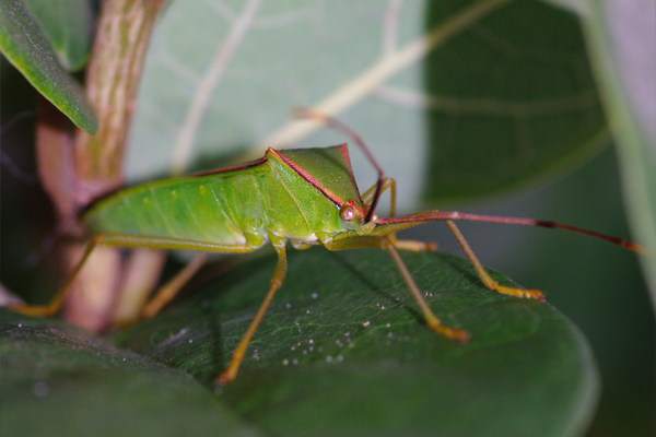 墓の側にあった樹木の葉には、イチモンジハムシ と オオクモヘリカメムシ の姿もあった。なんという木か分からないが、イチモンジハムシ が10匹以上いる。こんな光景は初めてだったので、興奮して撮っていると、通行人が足をとめて、私の方を怪訝そうに見ているではないか。 精一杯の笑顔で「こんにちは〜」と挨拶をすると、首をかしげながら「はぁ・・・」と歩き出された。 そりゃそうだろう、土曜の午後に、スーツを着たオヂサンが、墓の側で熱心にカメラのシャッターを押しているんだから。 我に返った私は、カメラを鞄に収めて、その場を立ち去った。
