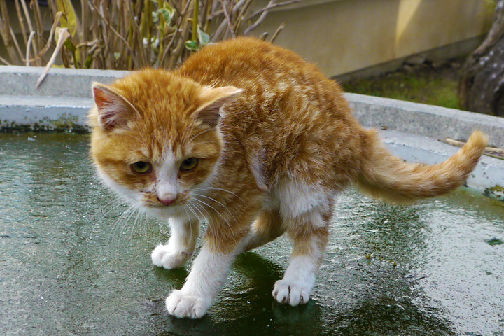 庭の貯水池に厚い氷が張っている。娘がトラを乗せて「スケート」と言って喜んでいる。本人は善意でやっているんだろうが、いかに肉球とはいえさぞかし冷たかろう。