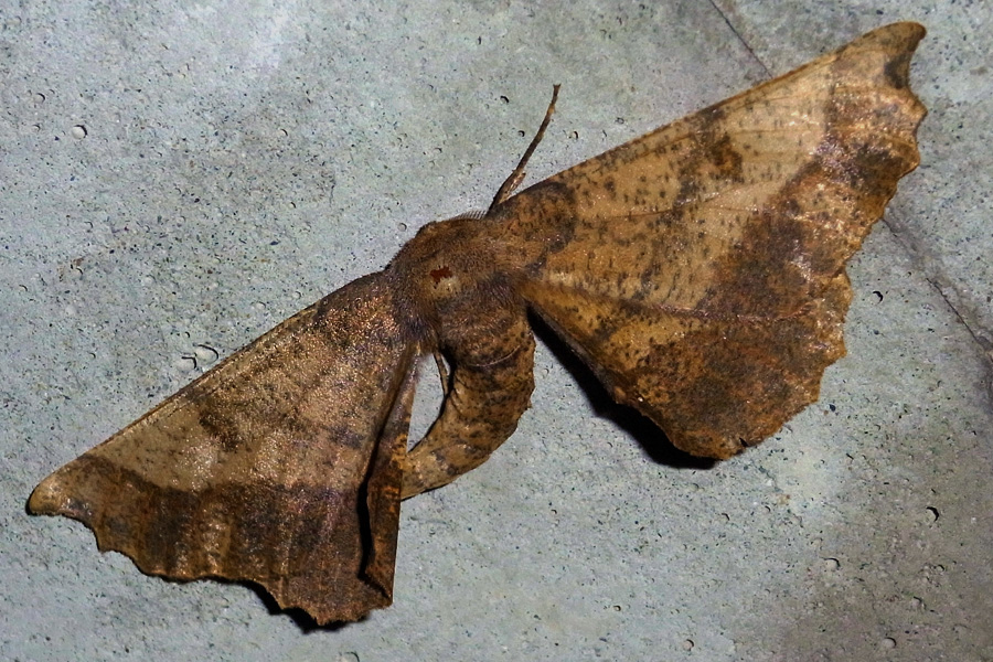 帰宅した夕方、愛犬ハルの散歩道中、高架下のコンクリートの壁に蛾がとまっていた。