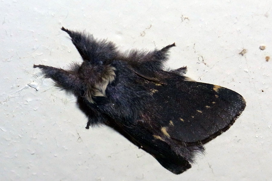 明日は地元の消防出初め式、準備が終わった夕方、久しぶりに愛犬ハルと、裏山墓地に散歩に行った。裏山墓地に行ったなら、寄らずにおれない公衆便所。やはりここは期待を裏切らない。暮れに出会った2種の他に、ご覧の2種の蛾がいた。