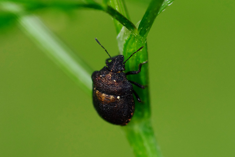 葉上にいたのはムシクソハムシ。虫、特にイモムシの糞に擬態しているように見えるので、こんな名前で呼ばれているが、まぁ呼ばれる側はイイ気がしないだろう。