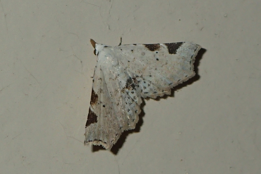 裏山墓地公衆便所は多くの蛾で賑わっている。が、ほとんどが既掲載種だ。そんな中、角々した直線的な翅の、初見の蛾がいた。これはマエフタモンアツバという蛾だ。