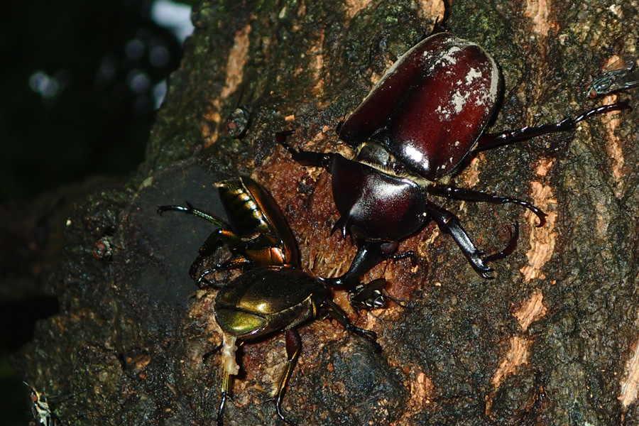 雨上がりの裏山では、樹液の出ている数本のクヌギに、スズメバチやクワガタの姿があった。その中、3年ぶりに樹液が確認できたクヌギに、カブトムシがいた。ツノの小さな小型のオスだが、2年ぶりに見るカブトムシに胸が高鳴った。そう、昨夏は1匹もカブトムシを見なかったのだ。今年の裏山はカブトもクワガタも多いようだ。