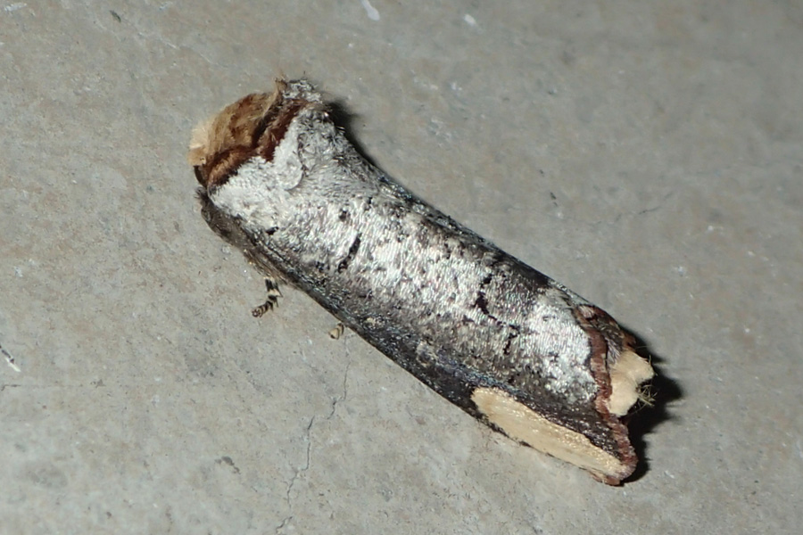 左下はタカサゴツマキシャチホコ。相変わらず見事な擬態で、パッと見た感じは、折れたサクラの小枝にしか見えない。