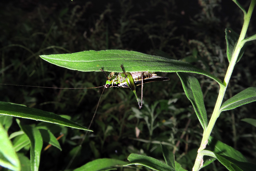さっそく夕方の散歩で、セイタカアワダチソウの葉裏にいたササキリを撮ってみた。う〜ん、予想通り接写はイマイチだな。明日からの広島出張で、風景を撮ってみようと思う。
