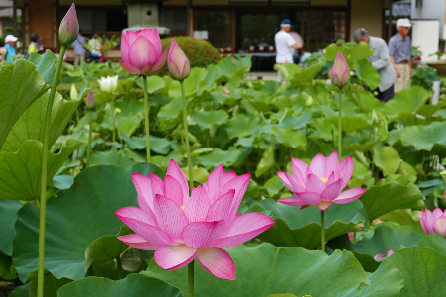3日目は宇治方面。アジサイやツツジで知られる三室戸寺を訪れた。アジサイのピークは過ぎていたものの、1万株のアジサイは見事だ。本堂前のハスは咲き始めの様子で、全開・半開・蕾と、それぞれを楽しむことができた。