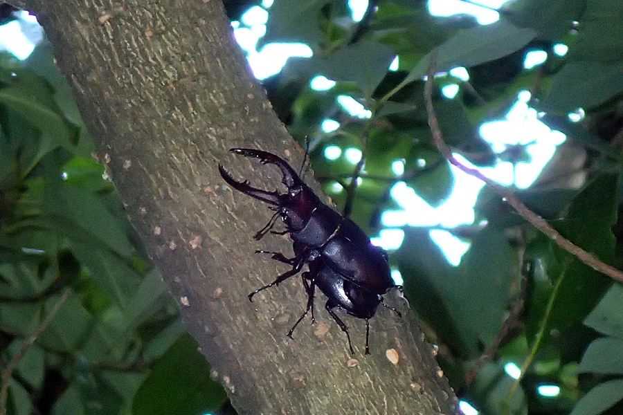 裏山の雑木林には、わずかに樹液の出ているクヌギが何本かある。昨年6月にヒラタクワガタがいたクヌギの洞に、今年も大型のヒラタクワガタがいた。