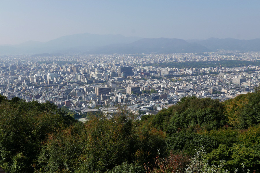 平安神宮前からタクシーで京都市街を一望できる将軍塚へ。20年ぶりだろうか。晴れていたのでとても景色が綺麗だった。空には何かを宣伝している飛行船が飛んでいた。