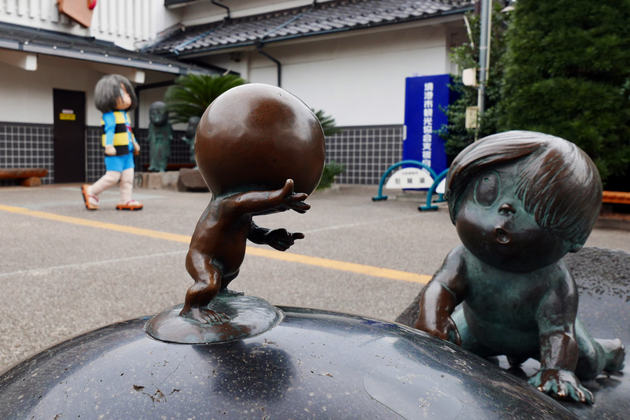 境港といえば「水木しげるロード」。通りの至る所に妖怪ブロンズ像がある。記念館前では鬼太郎もウロウロしていた。