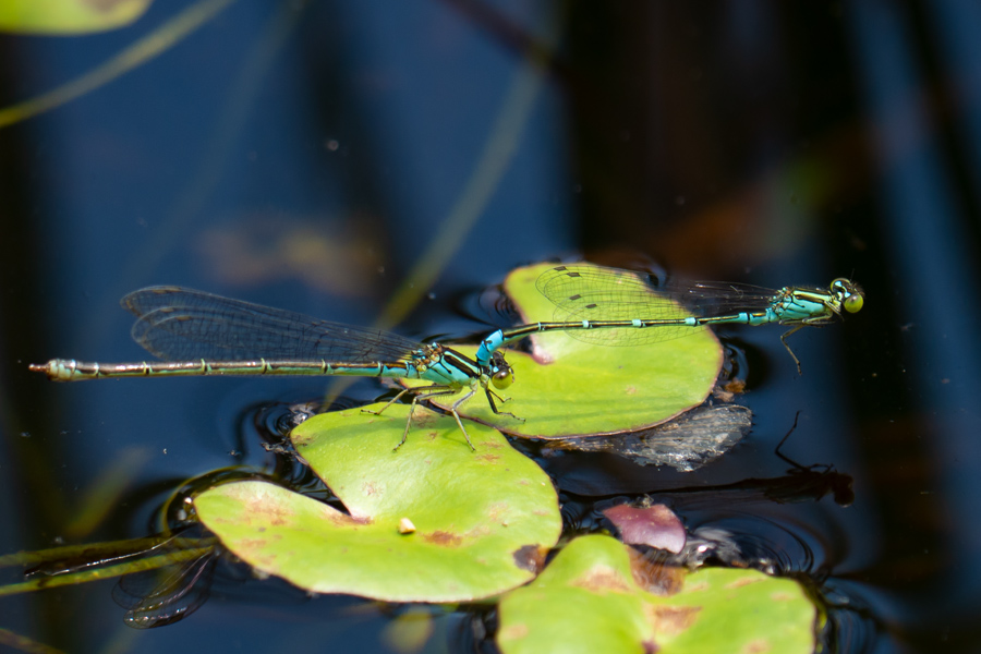 キイトトンボのすぐ近くにアオイトトンボがいた。それぞれ黄・青がつく名前だが、アカイトトンボというのはいない。近いのはベニイトトンボということになるのかな。