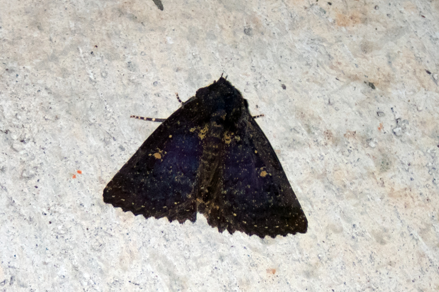 今朝の愛犬散歩で、いつもの道路高架下にオオシロテンクチバという黒い蛾を発見。よく見ると翅は青紫がかっていて綺麗だ。