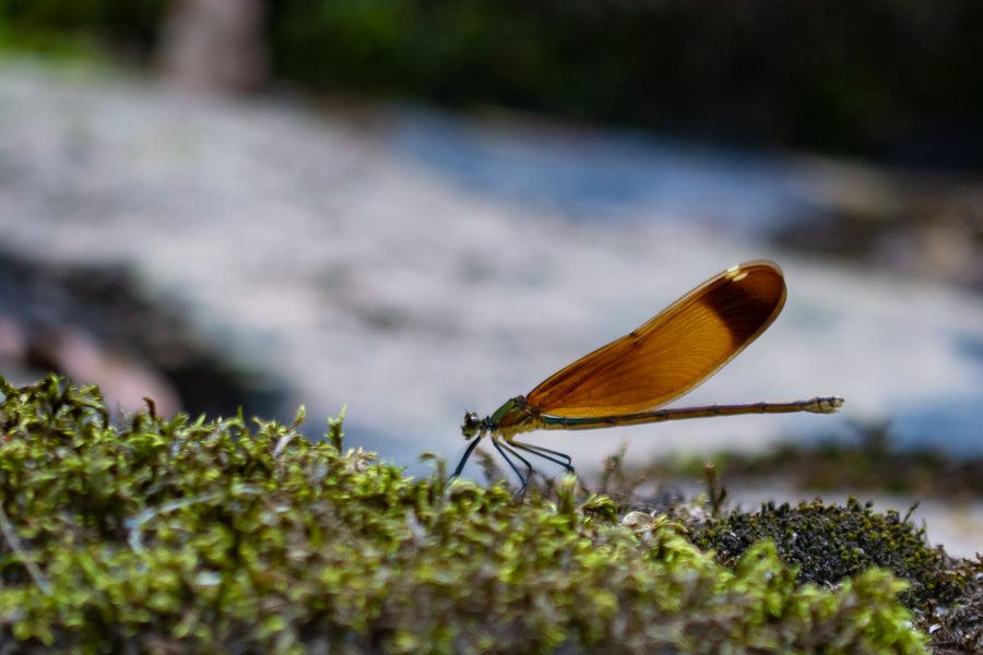 駐車場からの遊歩道にはいくつかの虫がいた。その中で1番大きかったのはヤマサナエだ。自宅の庭でも見るトンボだが、滝のある渓流沿いで見ると感動も大きい?