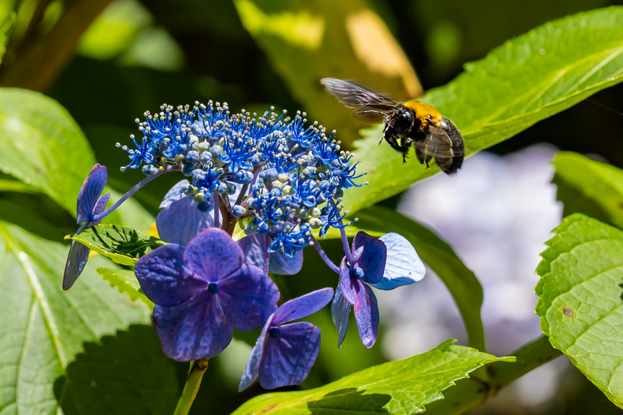 もくろみ通り紫陽花は満開で、多くの人で賑わっていた。紫陽花にはクマバチが多数やってきて蜜や花粉を摂っていた。