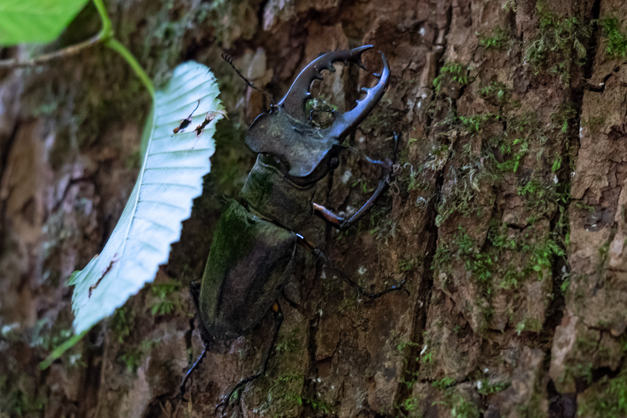 上の写真の状態でとまっていたミヤマクワガタ、樹液が出ている様子はないが、この状態で静止していた。あまりに大きかったので手に取ってみることにした。