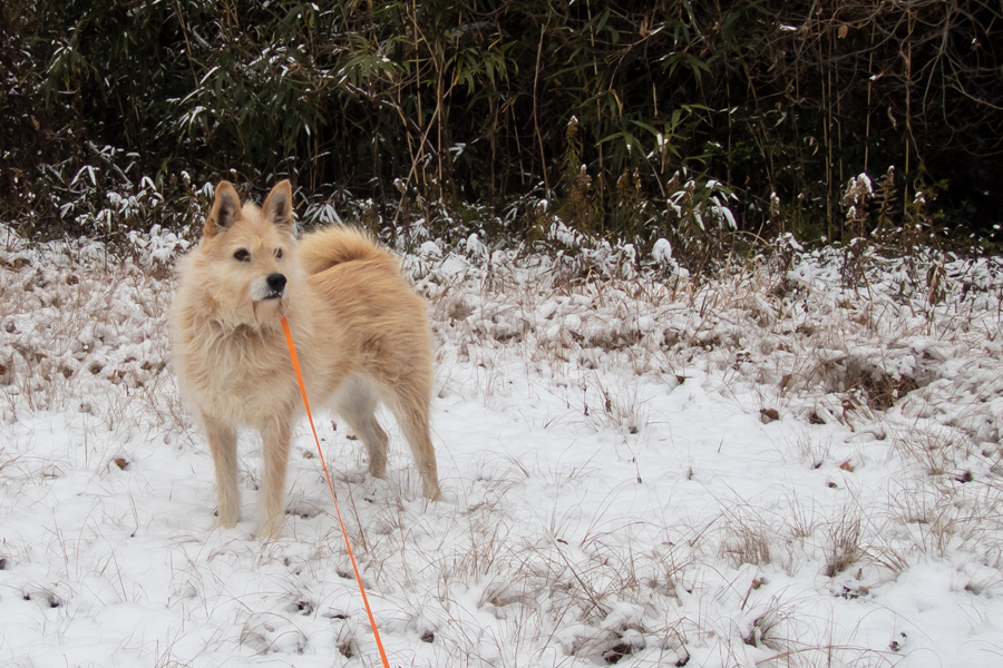 愛犬ハルは雪道の散歩ではいつも興奮する。滅多に積雪がないので、いつもと違う景色や匂いに刺激されるのだろう。4年前に雪の中を転げ回る姿を載せたので、今回はちょっと凜々しい姿を。
