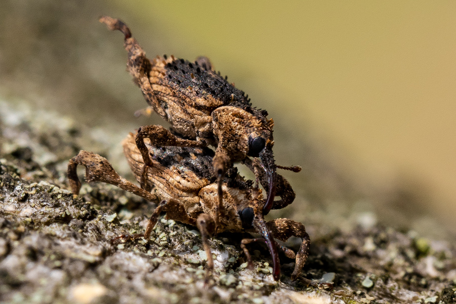 藤の幹を見ると、小さな虫があっちにもこっちにも。交尾しているものも多い。これはウスモンカレキゾウムシという散策記初登場の虫だ。