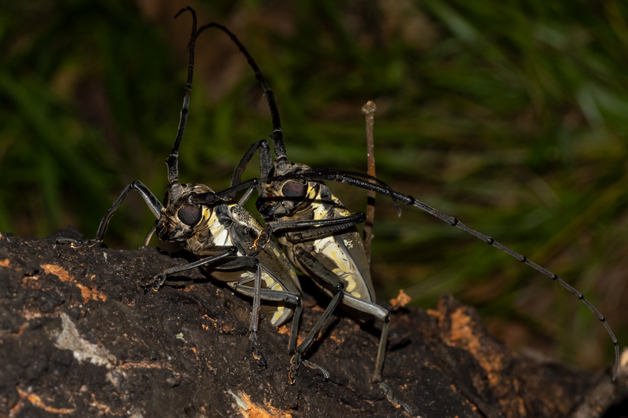 5日前に、14年ぶりに掲載したキマダラカミキリに、今夜は4回ほど出会った。交尾をしているものも撮ることができた。