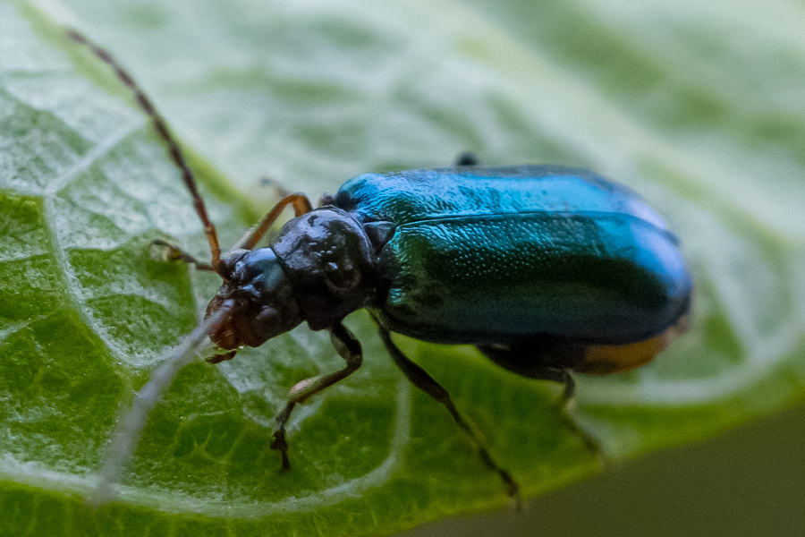 パッと見では小さな黒い虫だが、見る角度によってはご覧のように美しい瑠璃色の輝きを持つ。虫に限らず何事も視点を変えてみると、思いもしなかった感動を得ることがある。