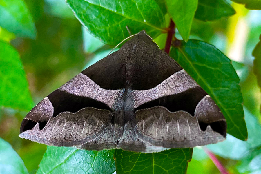 虫撮りをする余裕はないだろうと思っていたが、2日目の朝、国道沿いの歩道にいた綺麗な模様の蛾を見つけた。