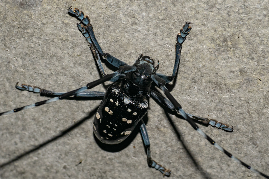 ゴマダラカミキリは昼行性だと思うのだが、どうして外灯にやって来るのだろう。そういえばやはり昼行性のセミが外灯下にいることもある。まぁ私も基本昼行性だが、夜の灯りも大好きだもんな。