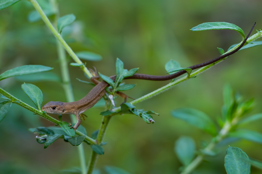 夕方の裏山散歩の時、小さなカナヘビを見つけた。