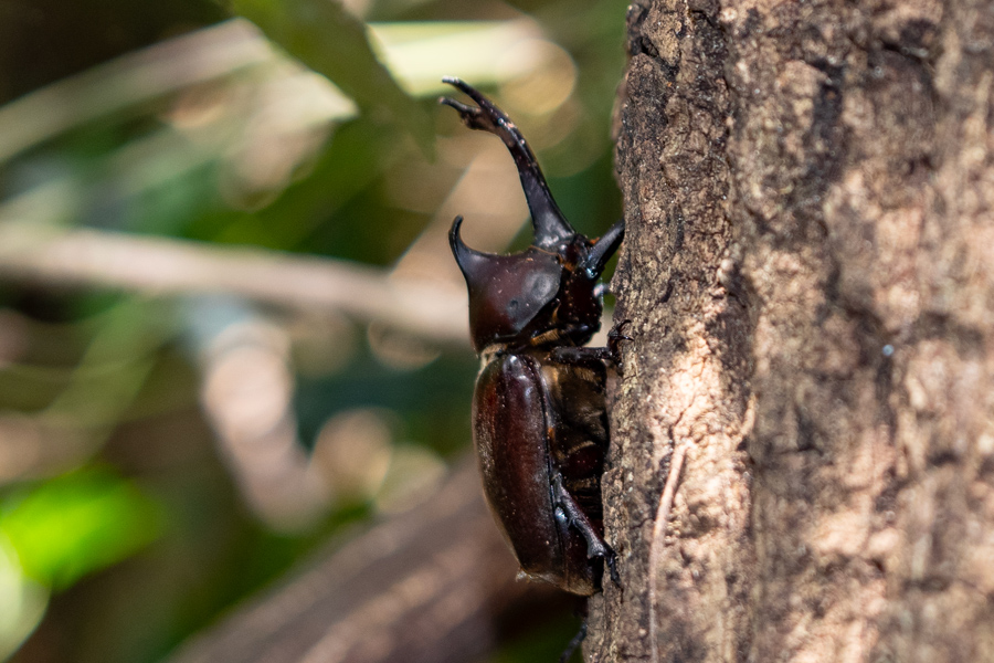 同じ木の幹に小さなクワガタらしきものが・・・コクワガタのオスだ。