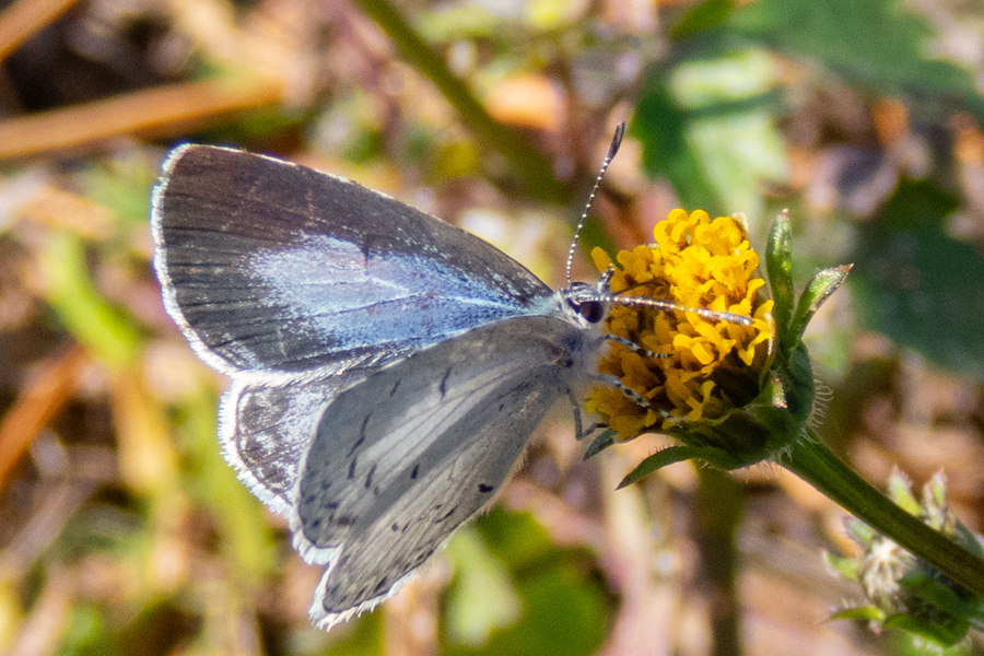 コセンダングサの花では、ルリシジミが蜜を吸っていた。