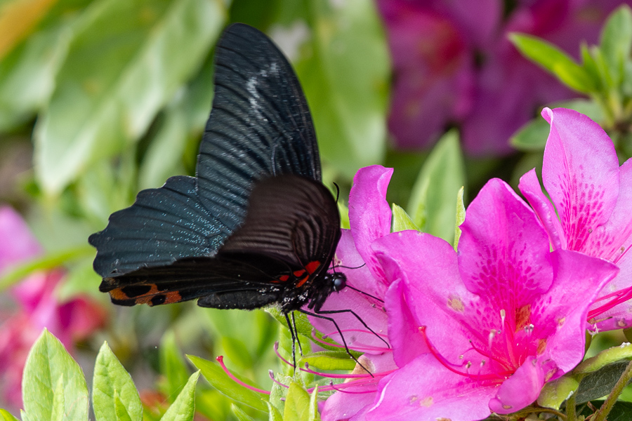 散歩の帰り道、ご近所さんところのツツジの花にはナガサキアゲハがいた。まだ翅の傷みが少なく、綺麗な個体だった。