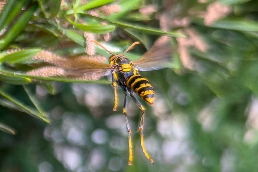 槙の木周囲を飛んでいたセグロアシナガバチを撮ってみた。アイフォンでもそこそこ撮れるもんだ。