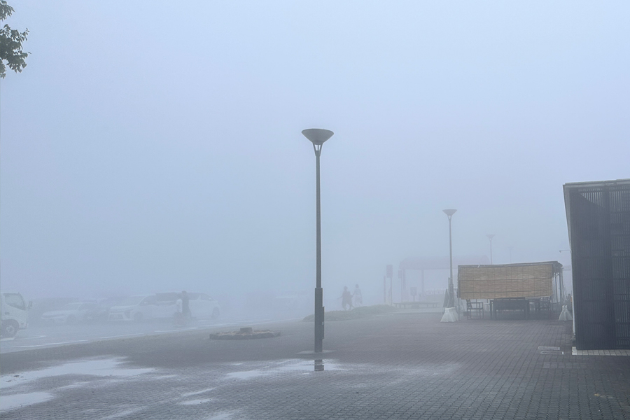 こんな濃霧でも無灯火で走る車がけっこういるのに驚く。自分は大丈夫だと思ってるんだろうが、自動車のライトは周囲に認識してもらうためにも点けなければならないんだぞ!