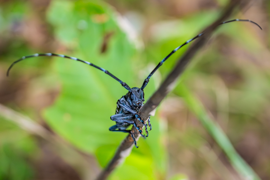 結局54mm以外はカブトムシとコクワガタくらいで少々期待外れ。さらに南のポイントへと移動することにし、再び藪漕ぎをしていると、T氏がゴマダラカミキリを見つけた。触角が長くて格好いい。