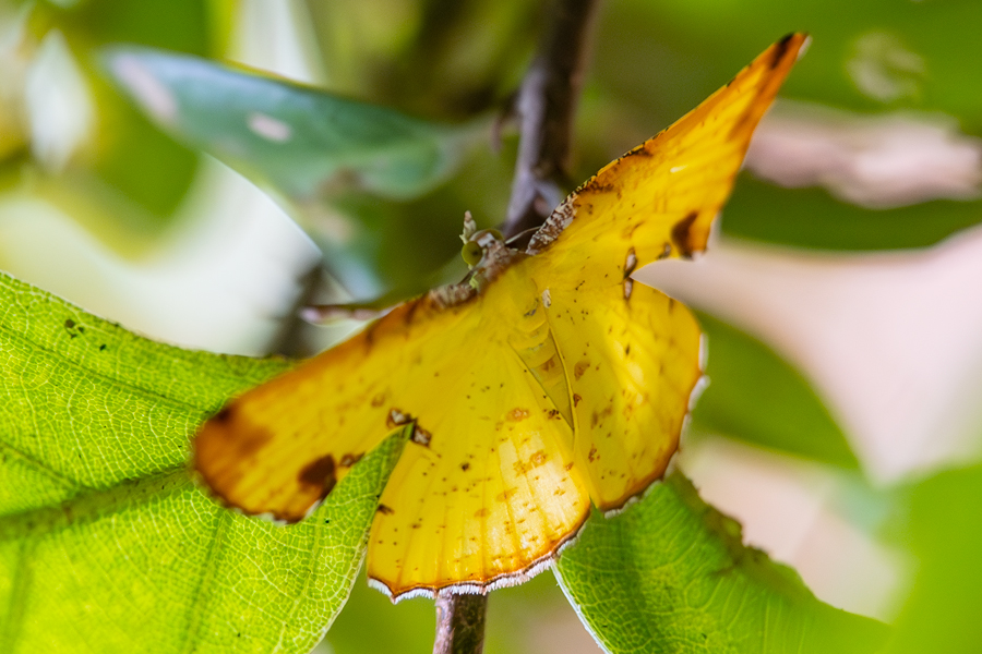 次のポイントでは樹液がほとんど出てなくて、カラカラに乾いていた。さらに次のポイントでも小物やコクワガタしか見つからないので、南部に移動することにした。駐車場に向かう途中にヒメウコンエダシャクが飛び出して、そばの繁みにとまった。