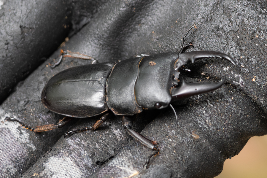 南部のポイントに到着したのは17時頃。期待しながら頭上のメクレを照らしてみると、クワガタの黒光りが見えた。クワガタ探しでワクワクする瞬間だ。「まぁまぁのサイズかな」「でも60mmはなさそう」などと言いながら、一応出てきてもらうことにした。