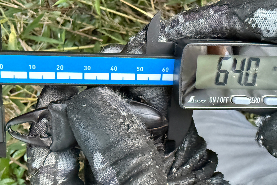 なんだかんだで60mm超えが3匹。50mm台が3、4匹? コクワガタやカブトムシなど合わせても全部で10匹少々と、数は少なかったが大物3匹で大満足。たっぷりと汗をかいたので、早くビールを飲みたい。