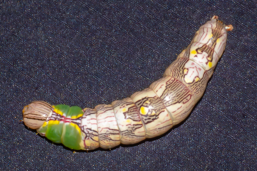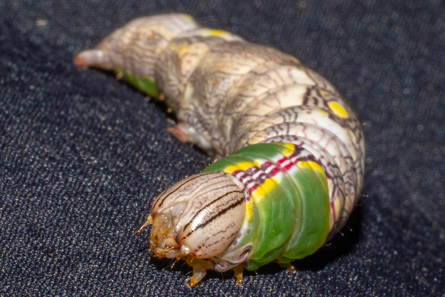 18時半過ぎに帰宅して、シャワーが先かビールが先かと悩んでいる時に、ズボンに何か付着しているのに気がついた。顔を近づけてみるとイモムシだった。