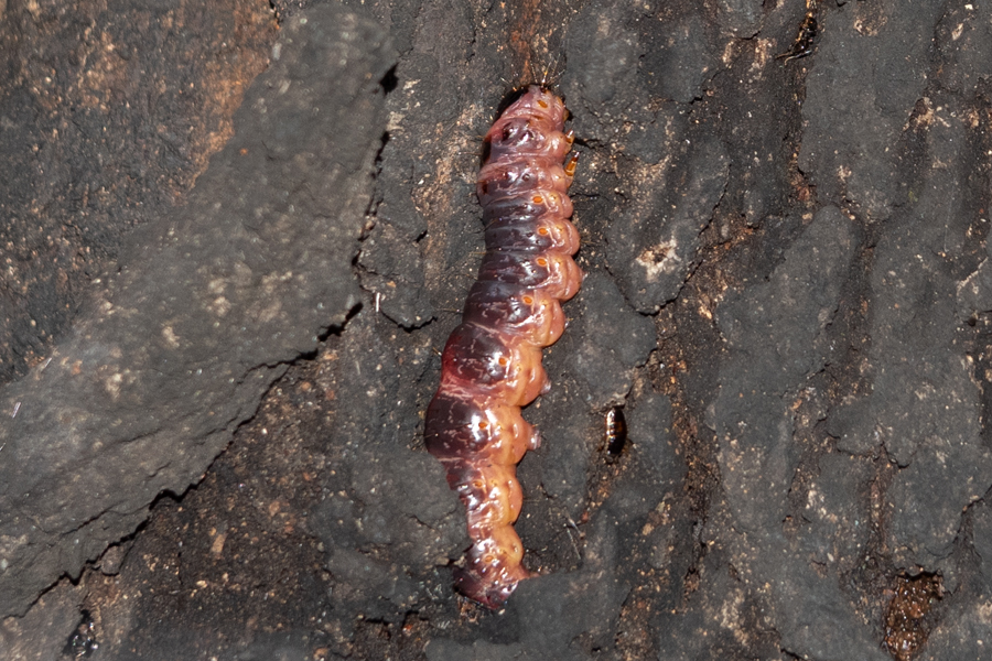 その近くのクヌギには巨大なイモムシがいた。ボウクトウガの幼虫ではないかと思うが、とにかくデカい。目測で70㎜は超えている。