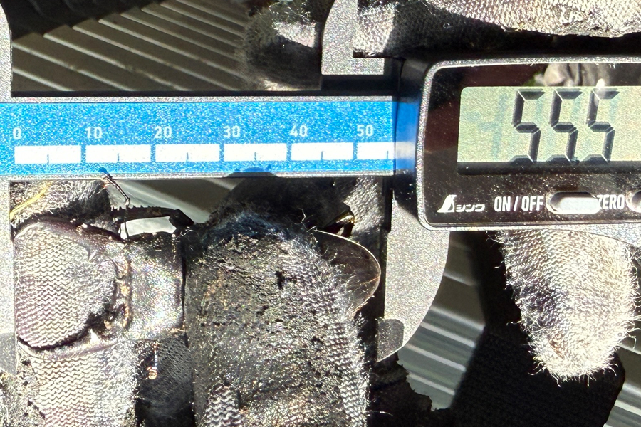 計測したところ54.7㎜。もう少し大きいかと期待したんだが、洞や捲れの中のクワガタは大きく見えるものだ。