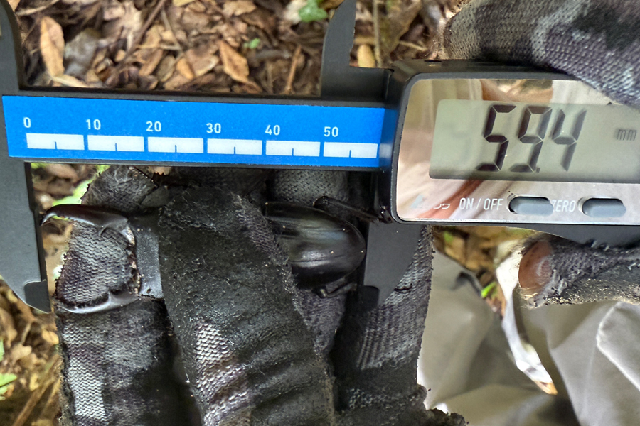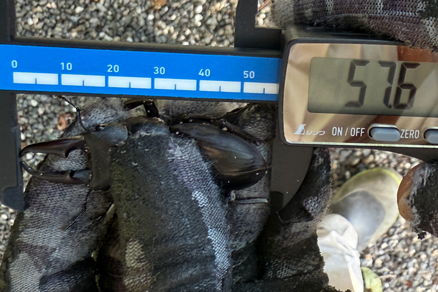 最後に訪れたポイントでは57.6㎜のヒラタクワガタがいた。
