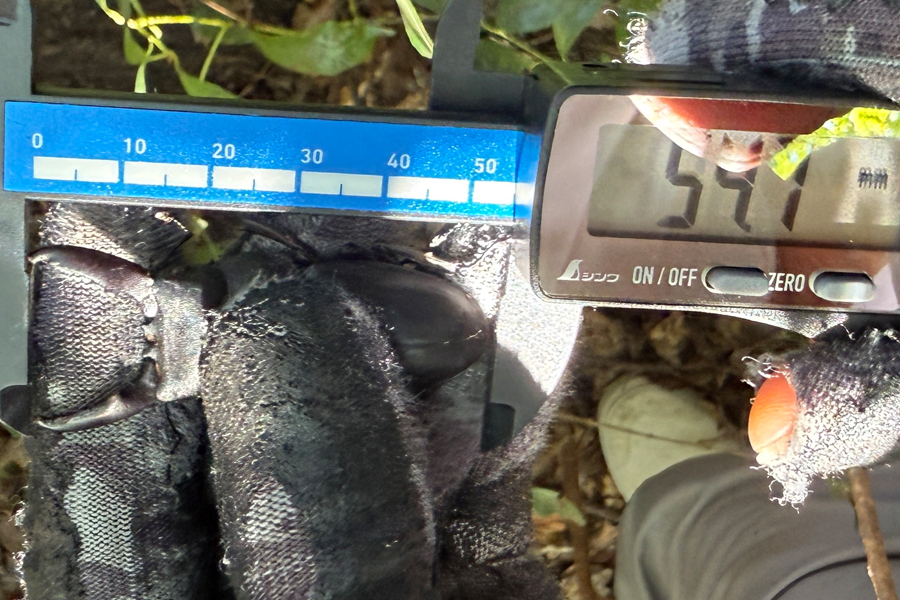 計測結果は59.4㎜。私たちの「大物」の定義60㎜には僅かに届かない。