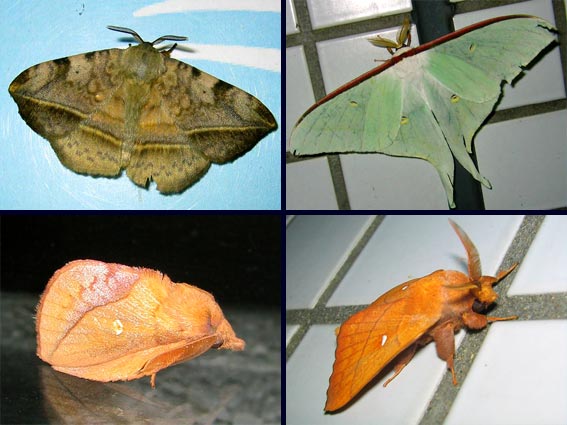 ガ が集まっていた。 左上)オビガ 右上)オオミズアオ