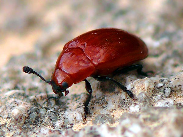- 庭石の上を、朱色の小さな虫が歩いていた。 初めて出会うこの虫は、アカハバヒロオオキノコムシだと思われる。 “オオキノコムシ”とはいうものの、体長は5mm前後くらいだ。 11月も下旬になり、虫と出会うことが少なくなってきたが、こうして初見の虫に出会える偶然が嬉しい。 偶然といえば、今日セブンイレブンで買い物をした時、抽選くじで現金5,000円が当たった。 くじには