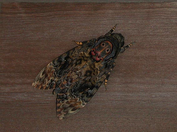 背中に人面型の模様を持つ、大型のガ。 映画「羊たちの沈黙」のポスターに使われたことでも知られる。 幼虫は成長すると10cmにもなり、ゴマ・トウガラシ・タバコ・ナスなどを食べる。