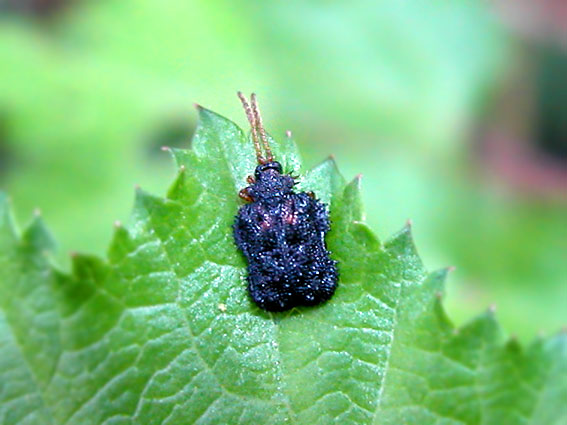 小さいながら、全身トゲだらけという、怪獣みたいなハムシ。 春から夏にかけて、主にクヌギ、コナラ、クリなどのブナ科植物の葉上に見られる。