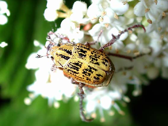 5月頃から野山の花に見られる。名前のとおり後足が極端に長いのが特徴。また、写真は雄で、淡黄色であるが、褐色のものもいる。わかりにくいけれども、写真は交尾中のもので、雄の下には褐色の雌がいる。雄は興奮して後足をピンと伸ばしているんだろうか?