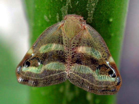 パッと見、小さなガではないかと思わせるこの虫はベッコウハゴロモ。これでもセミやカメムシに近い仲間である。クズなどの茎に口を刺してその汁を吸うあたり、セミに近い仲間だと頷ける。 こちらの存在に気づき、身の危険を感じると、弾けるように勢いよくピンッと跳ね飛んで逃げる。